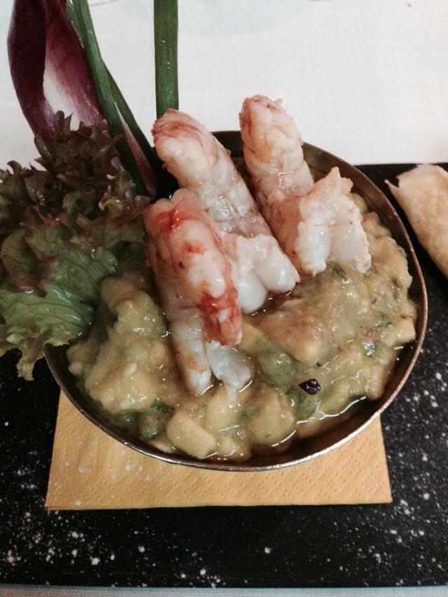 3. Гуакомоле из манго и авокадо с лангустинами и киндзой
