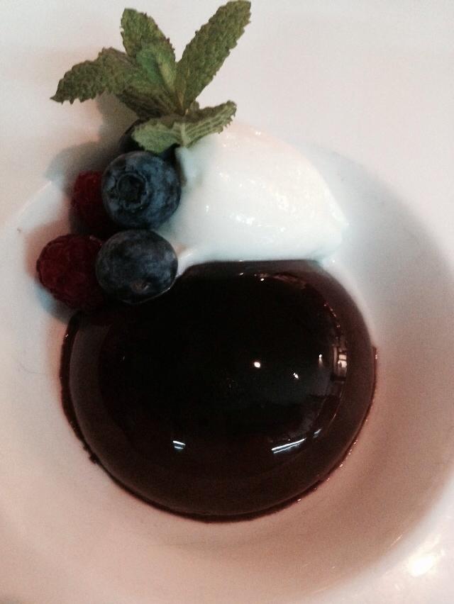 8. Шоколадная панна котта, с добавление отвара из листев инжирного дерева с кокосовым суфле и лесными ягодами